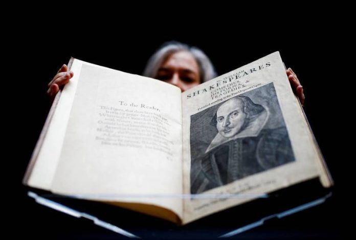 英國文豪莎士比亞所創作的經典戲劇歷久不衰,目前已知他生前唯一有畫家署名且標註日期的肖像畫,以超過1000萬英鎊(新台幣約3.7億元)出售,昨在倫敦格羅夫納之家酒店(Grosvenor House hotel)展出。