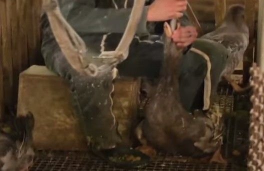 ▲工人每天都會將金屬管插進鵝胃中灌食。(圖/翻攝自Youtube/PETA )