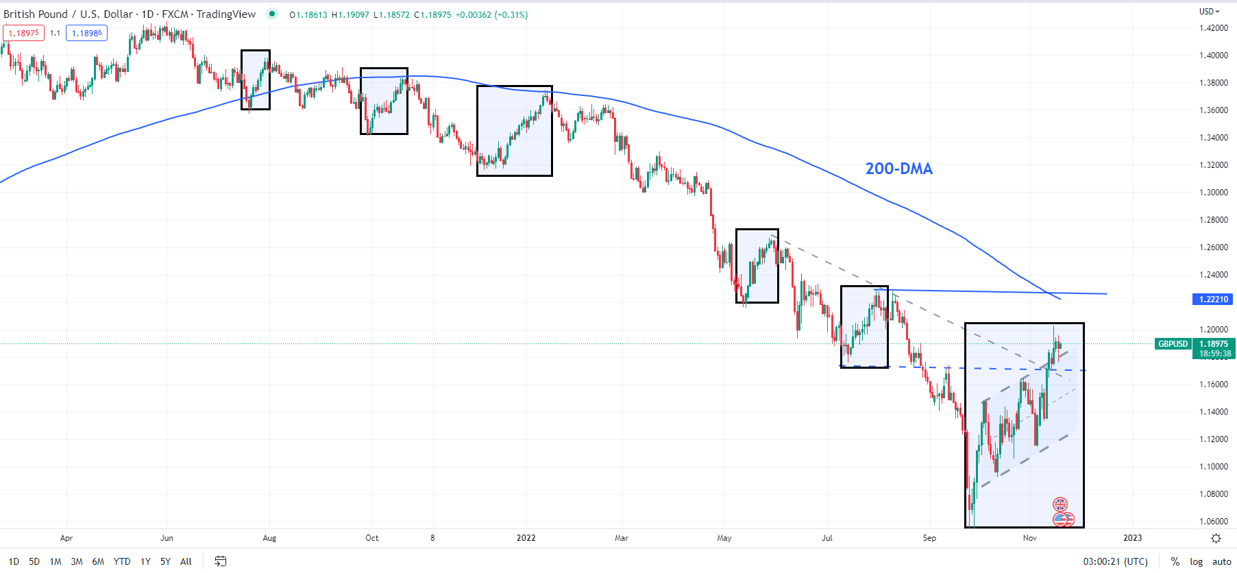 首先,與自2021年年中開始下跌以來的所有修正反彈相比,英鎊/美元從9月底反彈的幅度是最大的。