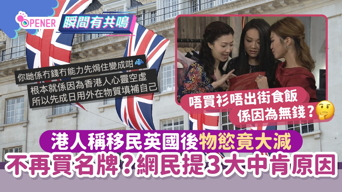 移民英國是很多港人近年討論的話題,不過能不能適應當地的生活又是另一回事了。有移英的港人在討論區發帖,指自己自移民後購物慾大減,不論是買衣服穿搭,抑或是外出用膳方面,直言沒有了想買好嘢及食好嘢以「滿足自己」的感覺,有網民就提出3大中肯原因!
