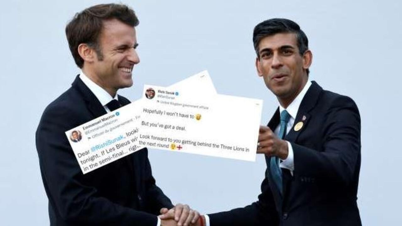 賽前,馬克龍在推特上向蘇納克打賭說:“親愛的里希·蘇納克,期待着今晚的比賽。如果法國隊贏了(他們會的!),你會祝我們在半決賽中好運的……對嗎?”