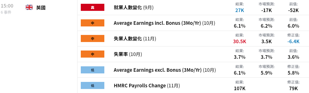 昨天英國GDP數據表現積極,GDP回到了疫情前的水平。在今天公布的就業數據中,失業率符合預期,薪資和就業率則有所改善。雇員增加了10.7萬,達到創紀錄的2990萬。職位空缺連續第五次下降,反映了經濟壓力對招聘的不確定性。工資增長好於預期,總工資和基礎工資都按年增長了6.1%,達到大流行後最強勁水平。然而,在對通貨膨脹進行調整後,總工資和基礎工資實際上都下降了2.7%。該數據增加了英國央行的負擔,這增大了周四加息75基點的可能性(市場目前定價為加息57基點)。鑑於經濟狀況,英國央行是否會跟進,還有待觀察。