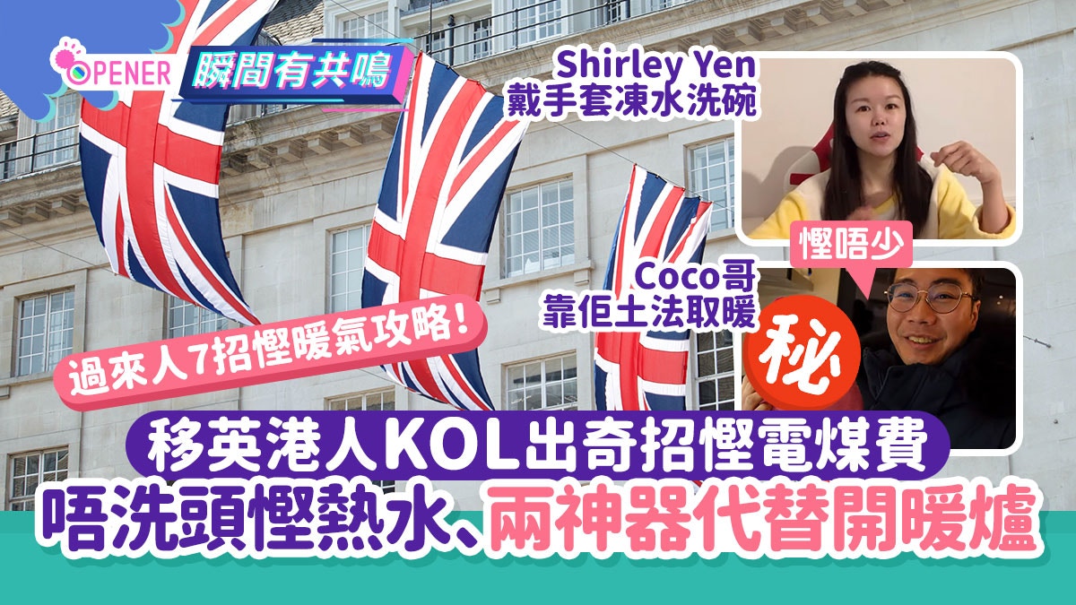 【移民/英國/能源/KOL/暖氣】英國近月能源價格暴升,加上踏入寒冬,天氣跌入零度需開暖氣,不少移英港人均大嘆電費加上天然氣費一個月動輒要四、五百英鎊。移英KOL Shirley Yen以及Coco哥均拍片自爆各種能源慳錢奇招自救,真正慳得一蚊得一蚊。