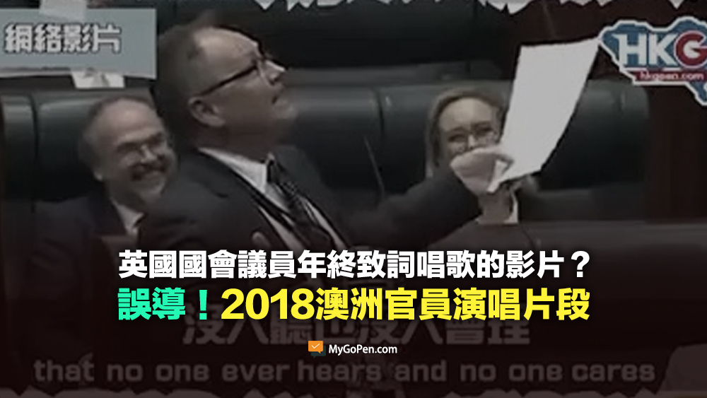 綜合以上,該影片實為 2018 年澳洲文化藝術部長 David Templeman 在議會上唱歌的片段,不是網傳近期英國國會議員年終致詞的說法。