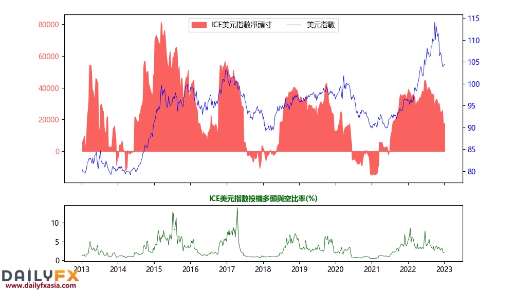 截至01月03日,ICE美元指數投機淨多頭增加820份(或4.8%)至17761份。其中投機多頭增加29份(或0.1%)至33171份,投機空頭減少791份(或4.9%)至15410份。