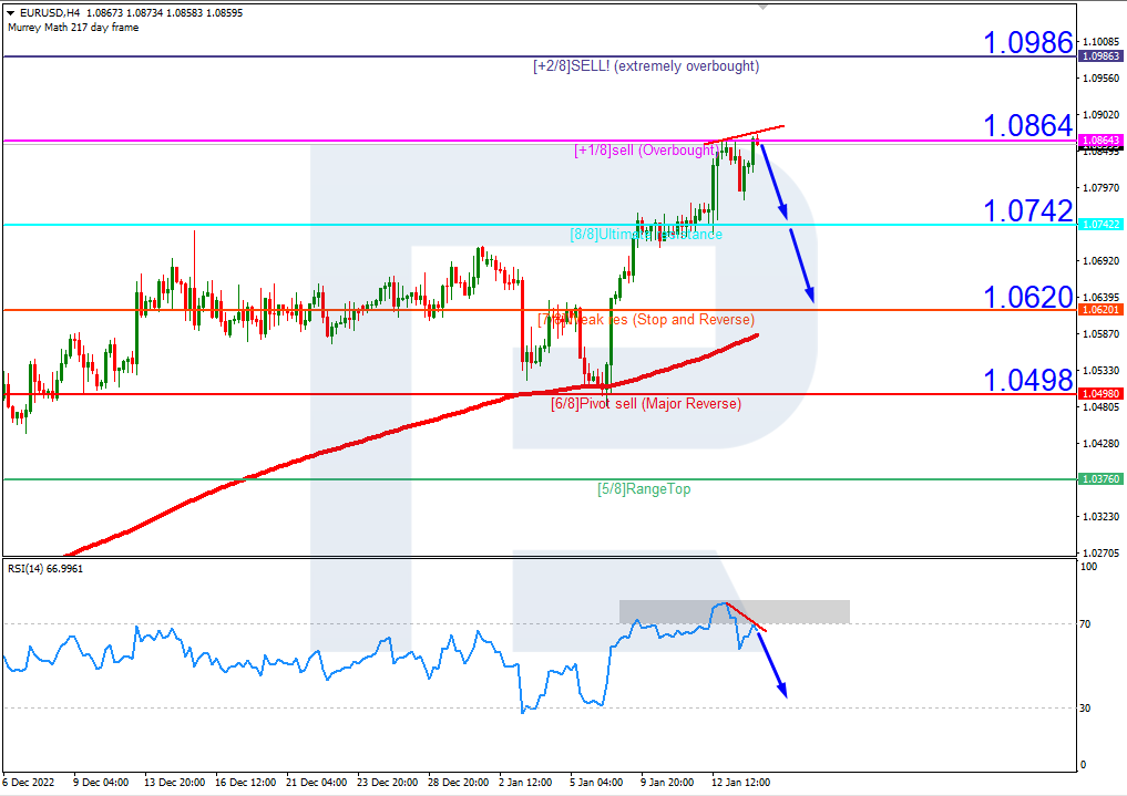 在4小時圖上,匯價處於超買區域。相對強弱指標(RSI)似乎出現背離。因此,價格料反彈脫離1.0864,隨後將跌至1.0620的支撐水平。若升破1.0864的阻力水平,這種情況將失效。在這種情況下,匯價將繼續上漲並可能觸及 1.0986。