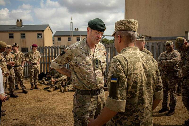 英國陸軍總參謀長桑德斯上將在內部信函中示警,對烏軍援某種程度上暫時削弱了英軍戰力,盡快恢復陸軍作戰能力非常重要。圖為前往視察在英受訓烏軍士兵的桑德斯。(圖擷取自烏克蘭陸軍臉書粉絲專頁)