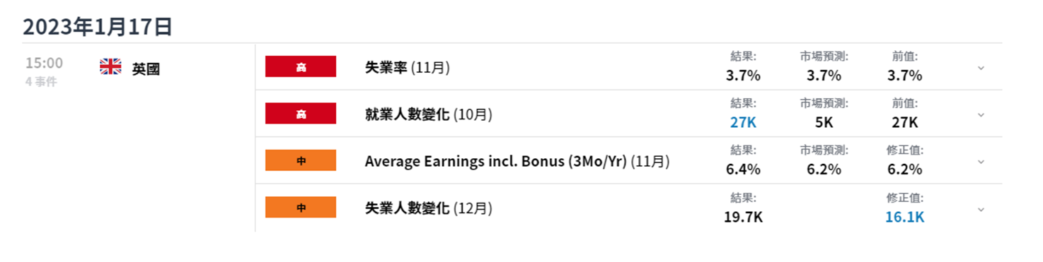 在英國超高通脹、工資持續上漲和強勁勞動力市場的背景下,英央行將在下個月的利率決議上繼續加息,幅度很可能會超預期。此外,將於明天(1月18日)公布的英國最新通脹數據值得關注。