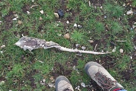英格蘭漢普郡(Hampshire)居民巴克(Julie Barker)上周在戈斯波特(Gosport)海灘遛狗時,意外發現地上出現一具仍保留皮膚的詭異遺骸,於是便將這個神秘動物拍下後分享到網路,沒想到竟引發網友熱議,有人甚至猜測,那可能是具外星人骸骨。
