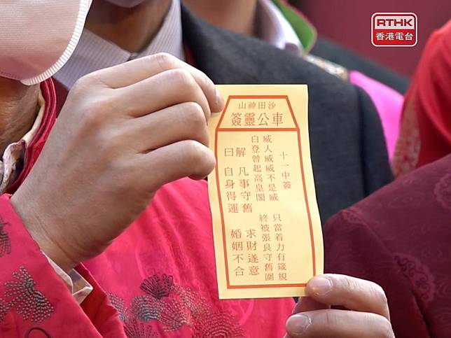 今日是大年初二車公誕,鄉議局主席劉業強為香港求得第十一籤的中籤。劉業強說,過去三年疫情,令大家生活有很多阻滯。籤文的寓意是政府要多聽好的意見,香港面對由治及興的新形勢要比較謹慎,又期望財政預算案令香港真正復蘇。有解籤師傅說,12年前同樣求得這籤,但今年的環境較差,相信香港能突破困局,建議政府不分派別地做好經濟。