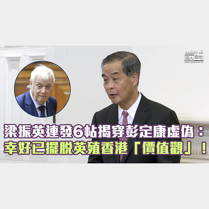 法輪功喉舌《大紀元時報》早前刊登了有關末代港督彭定康的報道,指他認為「香港所代表的價值觀將比獨裁政權更長久」,又指「獨裁政權遲早會消失」云云。全國政協副主席梁振英今日(29日)於社交媒體以英文連發6帖,逐一駁斥彭定康的歪理。梁振英直斥彭定康虛偽,又指彭定康任港督期間,對香港人的教育、房屋、醫療或社會福利無所作為,一心只想通過挑起與北京的爭端來出名。