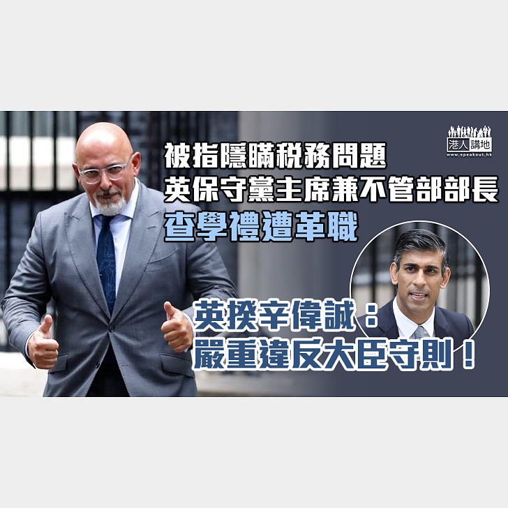 英國保守黨主席兼兼不管部部長(意即沒有部門的部長,無專責管理某一個部)查學禮(Nadhim Zahawi),因隱瞞稅務問題遭首相辛偉誠(Rishi Sunak)革職,辛偉誠指他「嚴重違反」大臣守則。查學禮亦是英國民意調查機構YouGov的聯合創辦人。